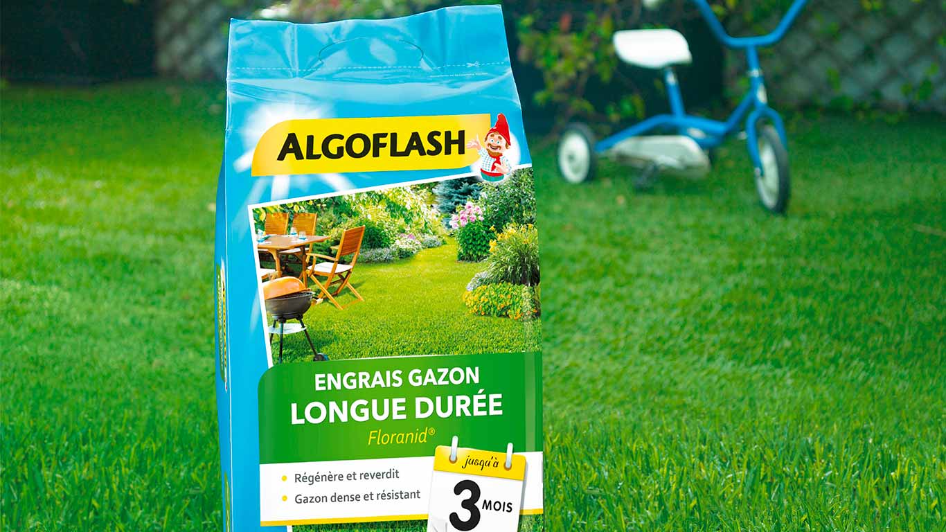 Algoflash, expert en nutrition des plantes et des gazons, lance un nouvel Engrais Gazon Longue Durée Floranid riche en azote. Issue de la technologie professionnelle Floranid, il libère progressivement pendant 3 mois de l’Isodur, de l’azote organique de synthèse à action lente, pour une croissance homogène. Cette formulation équilibrée et haute qualité garantit une fertilisation respectueuse de l’environnement et met à disposition du gazon les éléments nutritifs de manière optimale et durable. D’une couleur éclatante et intense, le gazon est plus vigoureux et plus résistant. Mieux enraciné et plus dense, il limite l’installation des mousses et mauvaises herbes.