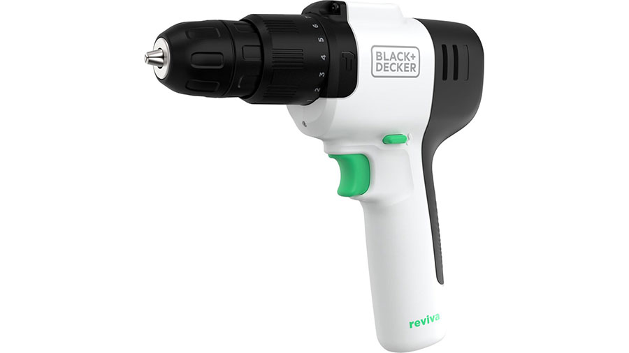 La perceuse/visseuse sans fil BLACK+DECKER Reviva REVDD12C est fabriquée en Tritan Renew, un matériau recyclé certifié à 50 %, et contient une quantité de matériau recyclé équivalente au poids de 8 bouteilles en plastique de 0,5 l à usage unique. La matière recyclée est certifiée par un processus d’attribution de bilan massique par une tierce partie, en partant du principe qu’une bouteille à usage unique de 0,5 l pèse en moyenne 10,3 g.