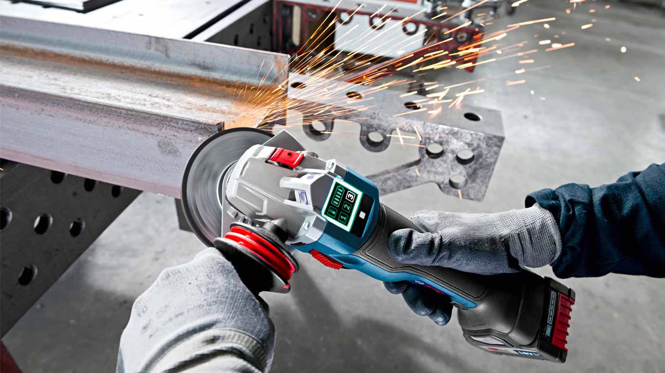 La meuleuse angulaire sans-fil GWS 18V-125 SC Professional offre également ces possibilités. En plus des informations et réglages consultables par smartphone, la meuleuse dispose sur le dessus d’un écran couleur. Cet écran affiche en permanence des informations sur l’état de l’outil ou des messages importants pour supprimer un problème, vérifier l’autonomie restante de la nouvelle batterie Eneracer Professional...