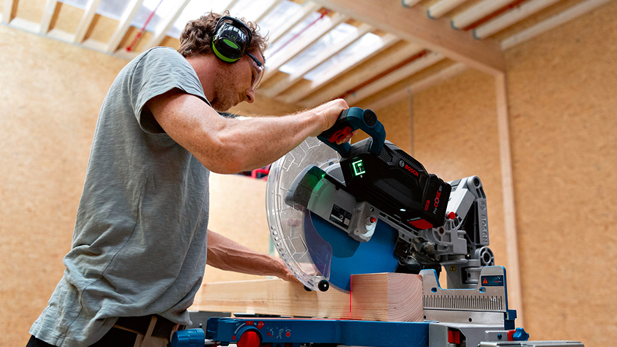 Un confort de travail optimal avec la scie à onglet sans fil Biturbo GCM 18V-305 GDC Bosch