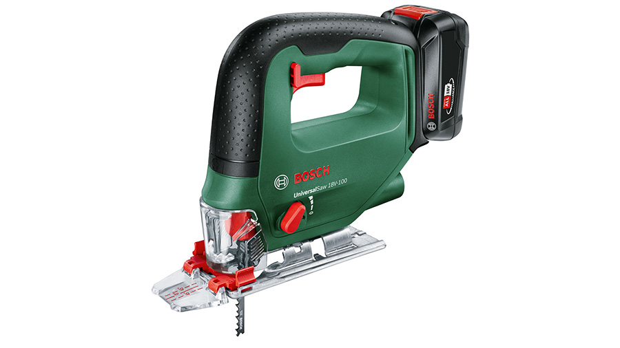 La scie sauteuse sans fil UniversalSaw 18V-100 Bosch offre une profondeur de coupe encore plus élevée de 100 mm. Il s’agit d’un outil polyvalent et puissant pour toutes les applications de sciage courantes. Poser du parquet, découper les plans de travail de la cuisine sur mesure ainsi que les découpes nécessaires pour l’évier et la cuisinière, couper les planches de terrasse à la longueur et découper les éléments individuels d’une cabane dans les arbres ou d’un portique d’escalade dans le jardin, toutes ces tâches peuvent facilement être effectuée à l’aide de l’UniversalSaw 18V-100.