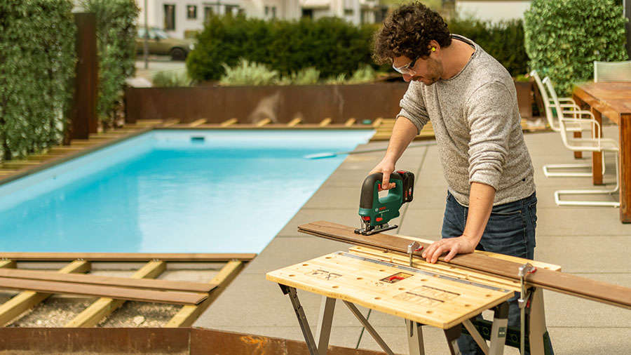 Poser un sol stratifié, personnaliser le mobilier de la chambre des enfants ou embellir le balcon, la scie sauteuse sans fil EasySaw 18V-70 Bosch offre une profondeur de coupe de 70 mm. Elle constitue une aide fiable pour les petits projets. Elle est légère et compacte, tient bien dans la main et est simple à utiliser, juste « facile ».