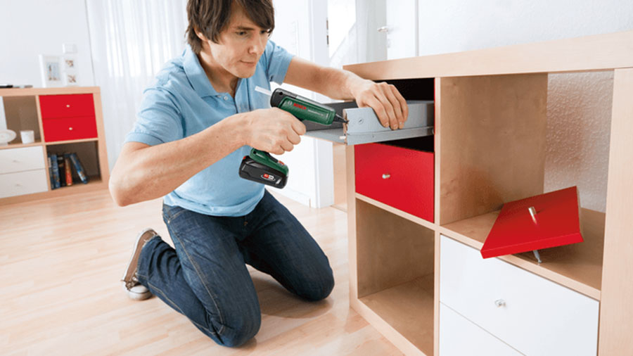 Le mode basse température de 130 °C est idéal pour traiter les matériaux sensibles à la chaleur tels que le polystyrène. Avec le mode haute température de 200 °C, l’AdvancedGlue 18 V crée des liens adhésifs puissants qui ne sont normalement possibles qu’avec des outils à fil. Cela signifie que même les plinthes, les tiroirs ou les panneaux décoratifs adhèrent de manière fiable.