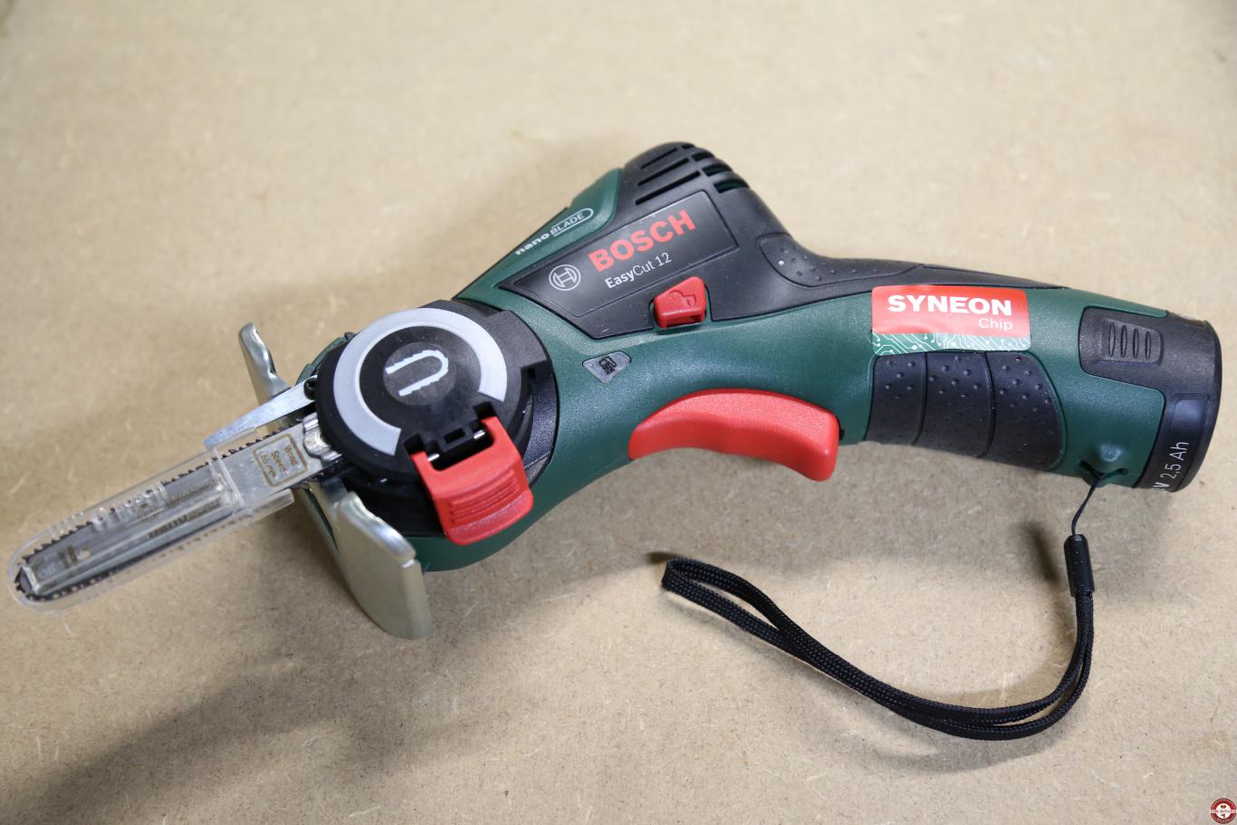 La technologie Syneon optimise l’autonomie de la batterie, une seule charge permet avec une lame neuve de découper jusqu’à 100 mètres de parquet. Après chaque utilisions, nous préconisions de nettoyer le couvercle qui maintient la lame notamment lors de la découpe de MDF. Aucun entretien n’est nécessaire, la lame se tend automatiquement avec le système SDS Bosch. Le fabricant propose actuellement 4 modèles de lames NanoBlade (NanoBlade Bois Basic 50, NanoBlade Bois Speed 50, NanoBlade Bois dur Basic 50, NanoBlade Bois Speed 65) comptez entre 19 € et 28 € pour une lame de rechange.