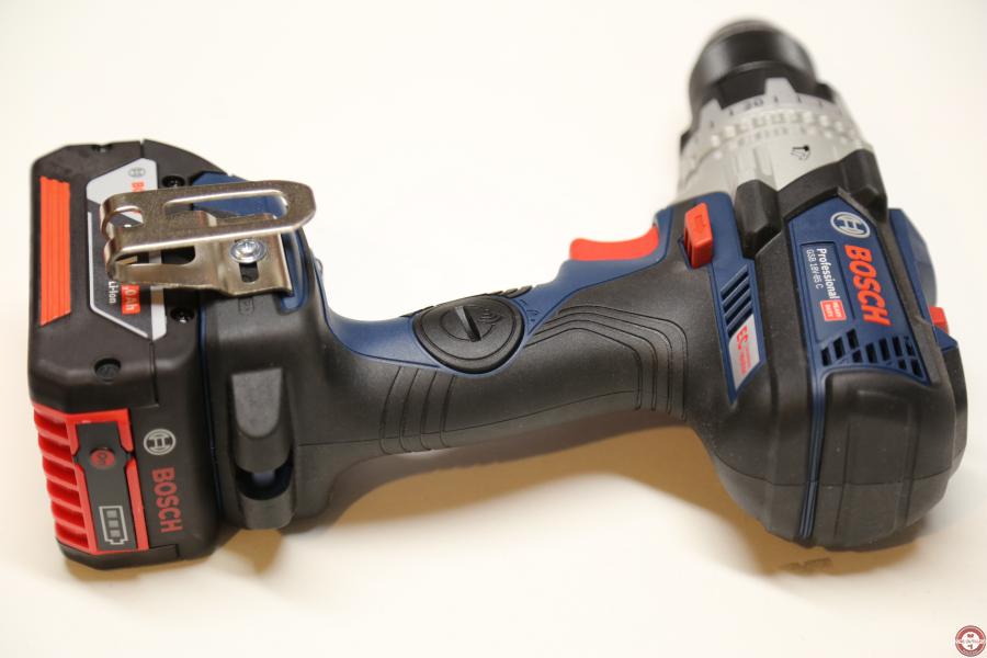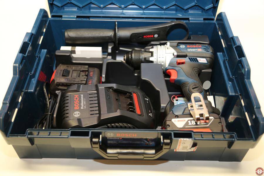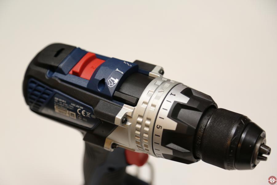 La perceuse-visseuse à percussion GSB 18V-85 C Bosch Professional fait partie de la gamme « Robust Series », le modèle Premium de marque allemande. Cette nouvelle génération est équipée d’un moteur Brushless qui développe un puissant couple de 85 Nm capable de couvrir les besoins courants, d’une boite mécanique 2 vitesses avec une vitesse à vide de 0 à 480 tours par minute en vitesse 1 et de 0 à 2100 tours par minute en vitesse 2 pour tous les travaux de vissage et le dévissage des vis ainsi que pour le perçage dans le bois, le métal, le céramique et les matières plastiques. De plus, la GSB 18V-85 C Bosch Professional dispose de la fonction percussion (0 à 31500 cps/min) pour le perçage à percussion dans la brique, la maçonnerie et la pierre naturelle. Très intuitif, le sélecteur de mode (perçage, perçage avec percussion et vissage) se manipule facilement. La bague de sélecteur de couple sur 25 positions est bien dimensionnée, il permet à l’utilisateur d’effectuer des travaux de vissages précis sans endommager le support. Elle est équipée d’un mandrin métal de 13 mm, qui accepte tous les accessoires du marché et d’une nouvelle poignée secondaire qui est censée être plus simple à mettre en place, mais dans notre cas, elle s’est révélée fastidieuse. Côté sécurité, la machine est équipée de la technologie KBC (Kick Back Control) qui protège l’utilisateur en cas de blocage de la mèche. Un système paramétrable grâce à la fonction connectée de la machine. Enfin, un éclairage LED est présent sur la base de l’outil.