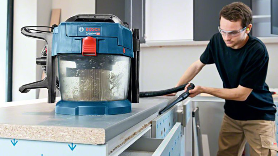 Le GAS 18V-10 L Professional Bosch muni d’une batterie 6,0 Ah assure jusqu’à 24 minutes d’aspiration, ce qui permet de poser jusqu’à 3 cuisines par exemple. Cet aspirateur eau et poussière se distingue aussi par son flux d’air élevé, 24 L par seconde. Les emplacements intégrés pour le tuyau et les accessoires ainsi que son poids de 4,6 kg facilitent le transport et l’utilisation de l’appareil sur les chantiers.