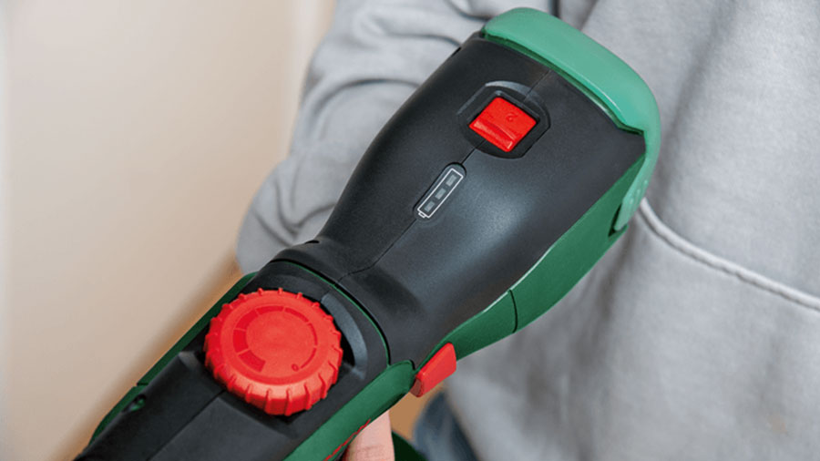 L’un des principaux avantages de l’UniversalSpray 18V-300 est sa facilité d’utilisation. Les bricoleurs peuvent choisir entre deux débits d’air allant jusqu’à 300 ml/min, ce qui permet de pulvériser la bonne quantité de peinture en fonction de la viscosité du matériau pour une finition parfaitement lisse. Vous bénéficierez d’un bouton de réglage du débit de peinture EasySelect très pratique et de deux positions de vitesse pour passer de la peinture pour bois à la peinture murale.