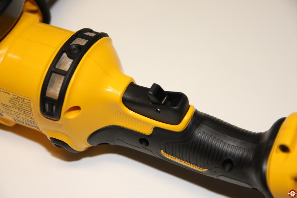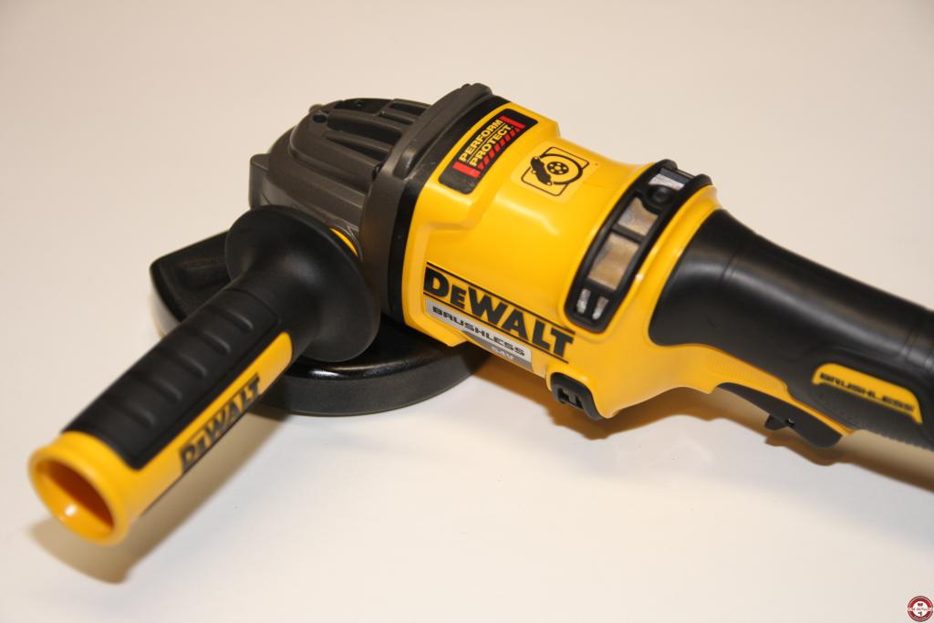 L’ergonomie des outils de la gamme XR FLEXVOLT a été totalement retravaillée par rapport aux outils actuels. Pour la meuleuse DEWALT DCG414, l’évolution majeure se situe au niveau de la poignée, redessinée pour offrir une prise en main et un contrôle optimal par l’utilisateur. La compacité de la machine a aussi été renforcée, pour faciliter le travail en espaces confinés. Côté sécurité, il s’agit d’un outil qui répond aux attentes des grands comptes soucieux de la sécurité des utiisateurs sur les chantiers. Elle est équipée d’un interrupteur-gâchette dit « homme mort » permettant de stopper le moteur dès le relâchement de l’interrupteur, d’un frein électronique capable d’arrêter la machine en moins de 2 secondes et d’un embrayage électronique provoquant l’arrêt de la machine en cas de blocage du disque. À noter aussi, un carter de protection réglable sans outils et un système d’évacuation des mailles, deux dispositifs qui protègent l’utilisateur des projections. Enfin, le système d’évacuation des mailles permet de refroidir la machine pendant son utilisation et donc d’augmenter sa durabilité.