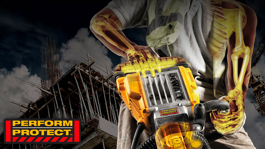 Jusqu’à 50 % de vibrations en moins avec le Perform & Protect DEWALT