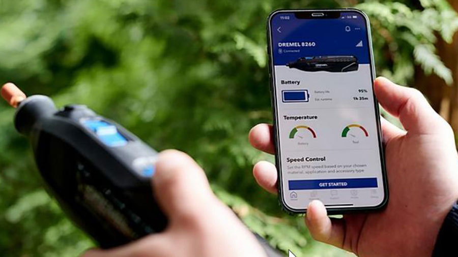Grâce à l’application MyDremel, les bricoleurs peuvent surveiller à tout moment les performances de l’outil multifonctions DREMEL 8260 et de sa batterie. Ils peuvent utiliser leur smartphone pour régler la vitesse de la machine sur la vitesse recommandée en fonction du matériau choisi et du type d’accessoire. Ils obtiennent des conseils pour gérer la surcharge et la surchauffe de l’outil. Ils peuvent contacter rapidement le service client de Dremel par e-mail ou par téléphone. Ils trouveront également l’accessoire adapté à chaque application et consulteront les conseils d’information.