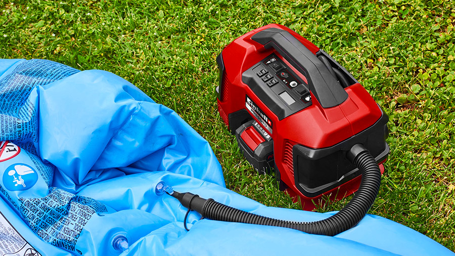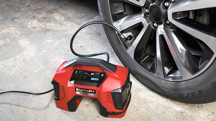 Le compresseur d’air sans fil PRESSITO 18/25 d’Einhell permet de gonfler les pneus de vélos et de voitures ainsi que les ballons de manière simple, rapide et sans effort, avec des pressions allant jusqu’à 11 bars.