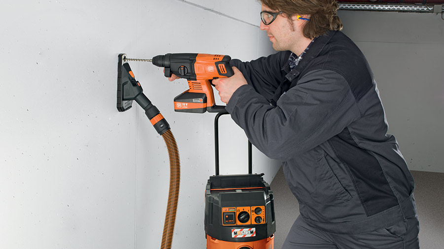 FEIN a développé le perforateur-burineur sur batterie ABH 18 Fein perforateur-burineur sans fil pour les métalliers, les constructeurs de machines ainsi que les serruriers, qui veulent percer efficacement et rapidement de grands diamètres. Le ABH 18 est également conçu pour l’aménagement et la rénovation, comme, par exemple, pour la pose de cuisine.