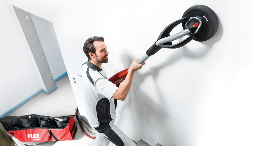 La marque FLEX lance le FLEX GE 7, la dernière génération de ponceuses à bras à mur et à plafond. La machine se démarque des autres par son poids, soit 1,6 kg moins lourd que son prédécesseur, le WST 700.