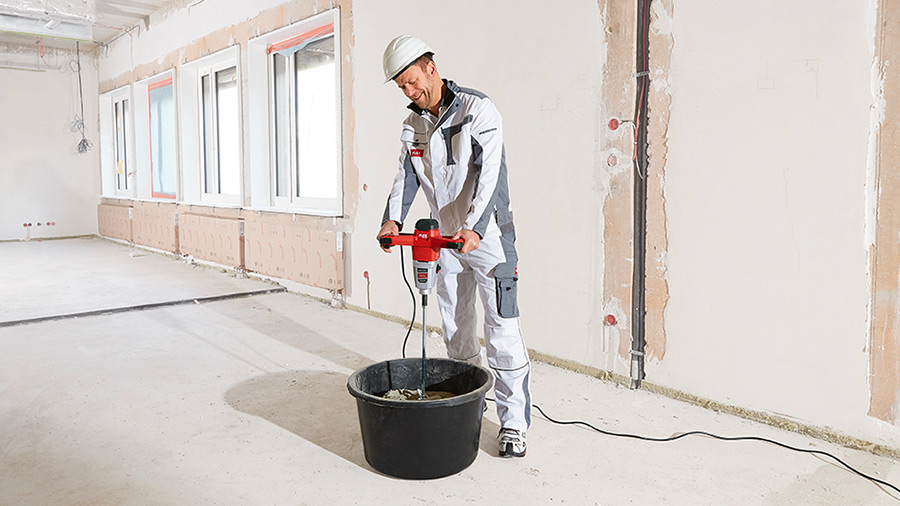 "Nos modèles MXE 1000, 1001, 1002, 1200, 1202 et 1602 couvrent tout le spectre des tâches de mélange qui doivent être effectuées sur un chantier de construction. Pour un peintre, un plâtrier ou un maçon, FLEX a soigneusement pris en compte toutes les tâches de mélange dans le développement de la nouvelle gamme MXE", déclare Oliver Gnann-Geiger.