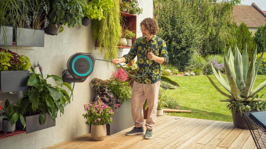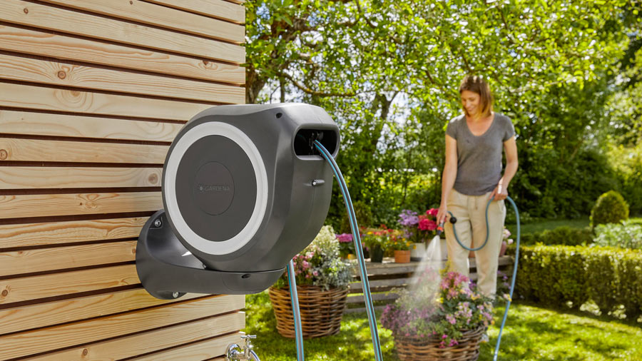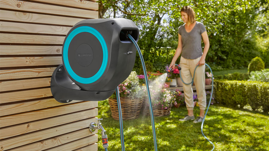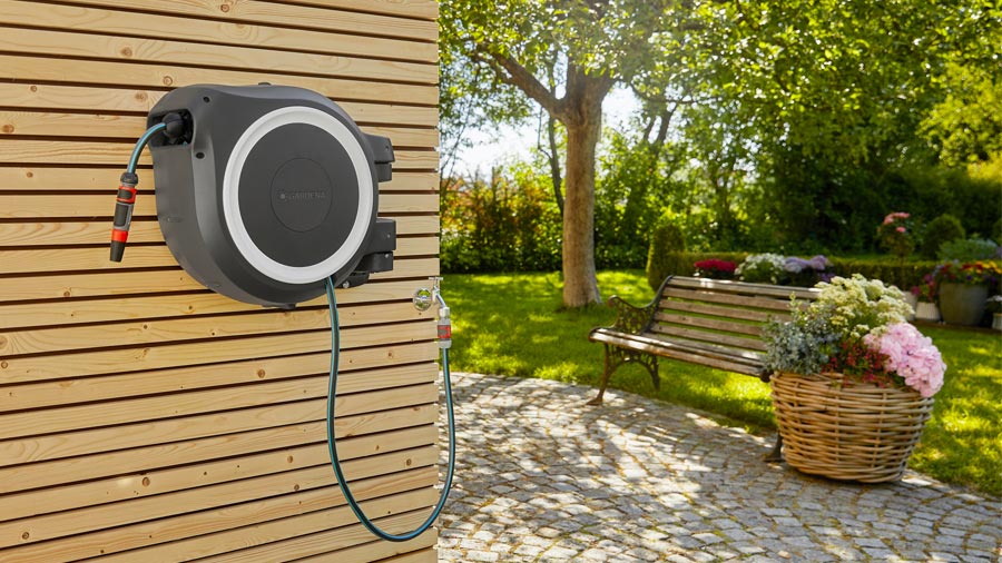 Le dévidoir automatique mural RollUp S 15 m Gardena : pour les petits jardins