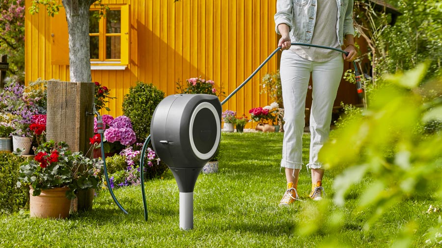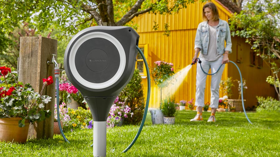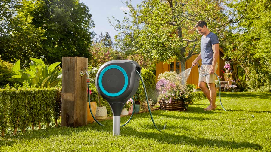 Le dévidoir automatique sur pic RollUp S 15 m Gardena : pour les jardins de petite superficie