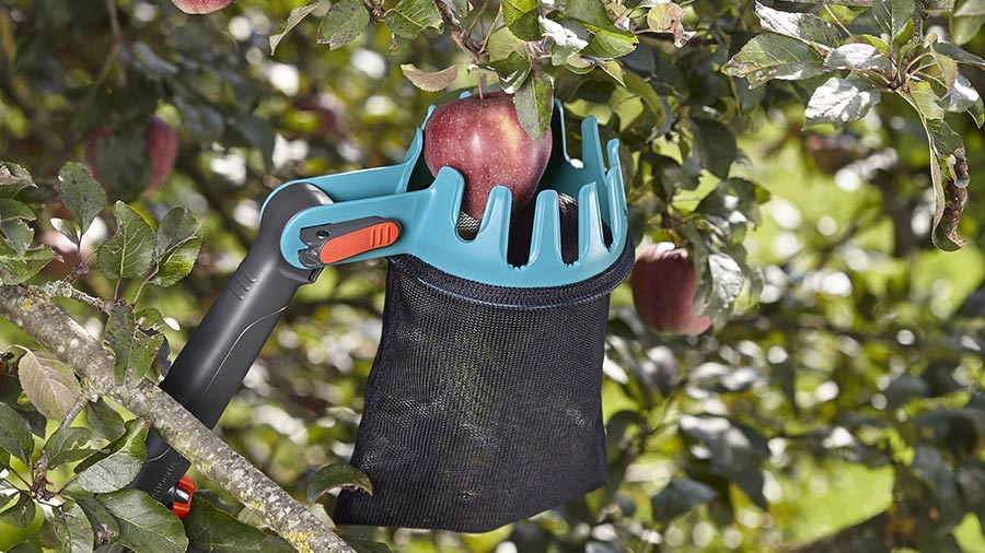 La récolte des pommes, poires et prunes est à l’honneur à l’automne. Pendant que certains jardiniers continueront à grimper pour les cueillir, d’autres pourront récupérer les fruits sans effort et sans les abîmer. Le cueille-fruits combisystem de Gardena possède des dents entre les lames qui facilitent la collecte, notamment celle des petits fruits. Le bouton-pression permet d‘ajuster facilement l‘angle de l‘outil et pour une utilisation sans manche télescopique, une poignée anti-dérapante a été intégrée. Quant au sac collecteur à mailles, il permet de voir les fruits récoltés.