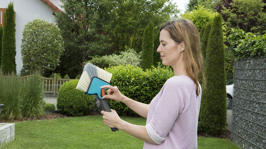 Durant l’automne, les araignées ont tendance à s’aventurer dans les maisons afin d’y passer l’hiver. Pour venir à bout de leurs toiles, la tête de loup combisystem est l’outil idéal. Elle possède un bouton-pression pour ajuster facilement l‘angle de l‘outil et une poignée anti-dérapante intégrée pour une utilisation possible sans manche combisystem.