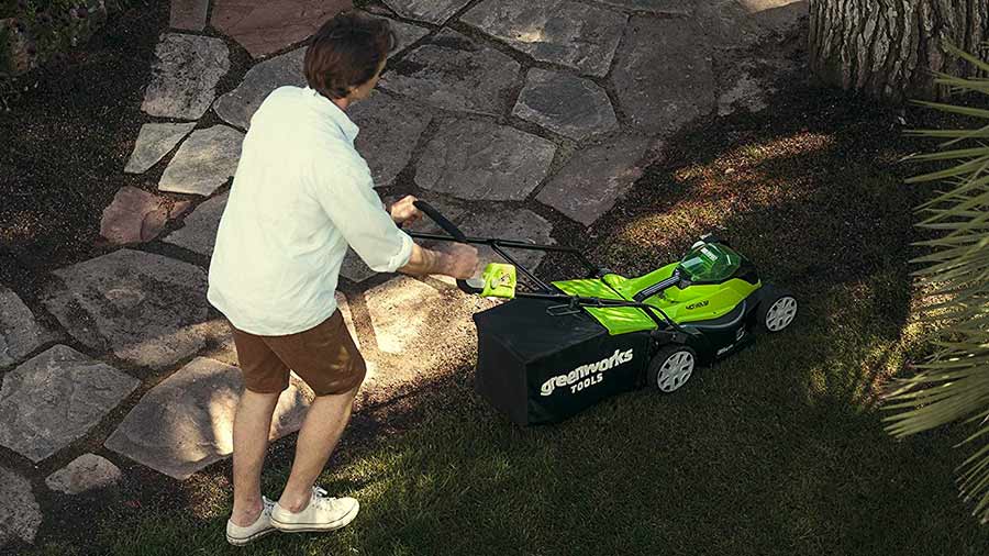 La tondeuse à gazon sur batterie G40LM35 Greenworks : légère et facile à manier