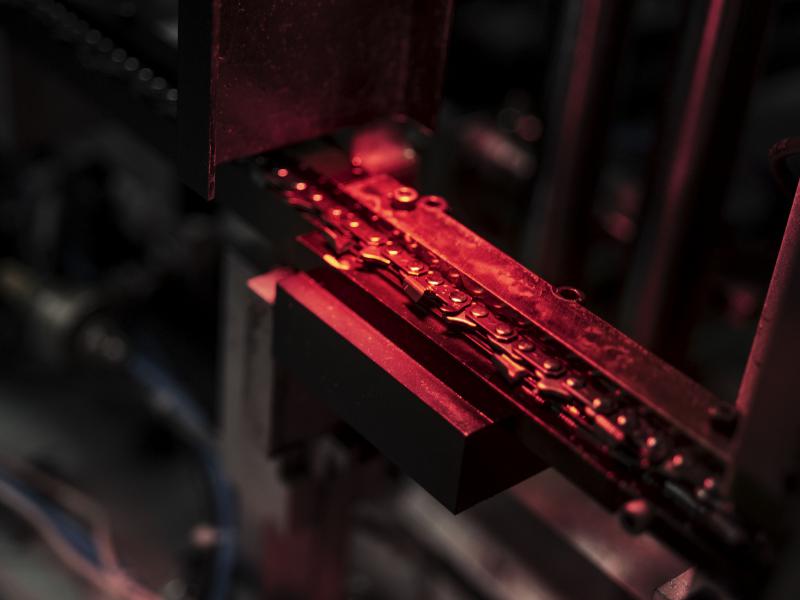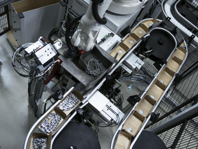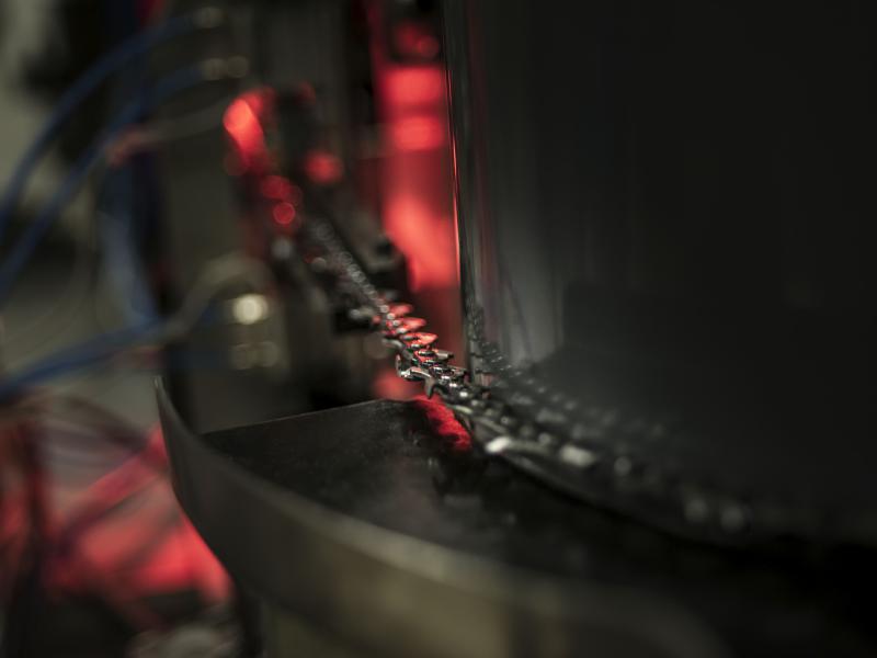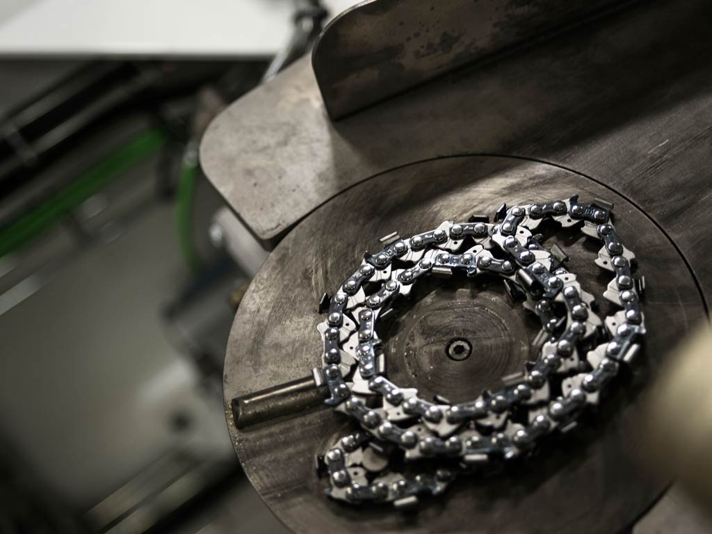L’usine de chaîne d’Huskvarna emploie plus de 100 personnes et est idéalement située à côté de l’usine et du bureau de recherche et développement des tronçonneuses. Toutes les pièces de la chaîne sont fabriquées sur place depuis l’acier brut jusqu’au produit fini, réduisant ainsi la dépendance à des fournisseurs extérieurs et garantissant la qualité de la chaîne. L’usine est conçue pour avoir un impact environnemental neutre et utilise une technologie de pointe dans le recyclage des produits chimiques et de l’énergie.