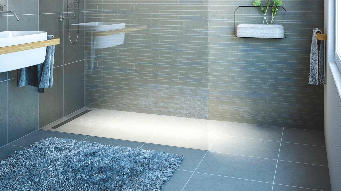Très accessible, même en fauteuil roulant, la douche à l’italienne créée avec Qboard liquid line garantit la sécurité, l’étanchéité et une haute résistance à la pression (>200 kPA).