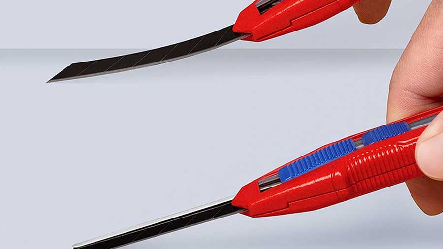 Tranchant et stable, le Cutix KNIPEX promet des coupes propres, nettes et sûres, même avec des angles de coupe difficiles, sans risque de pliage ni de rupture involontaire de la lame. La lame est flexible lorsque la barre de stabilisation est rétractée, idéale pour les coupes dans les zones difficiles d’accès. Il permet de réaliser des coupes de différentes profondeurs en appuyant et poussant en même temps sur la gâchette sécurisée pour sortir la lame à la longueur souhaitée.