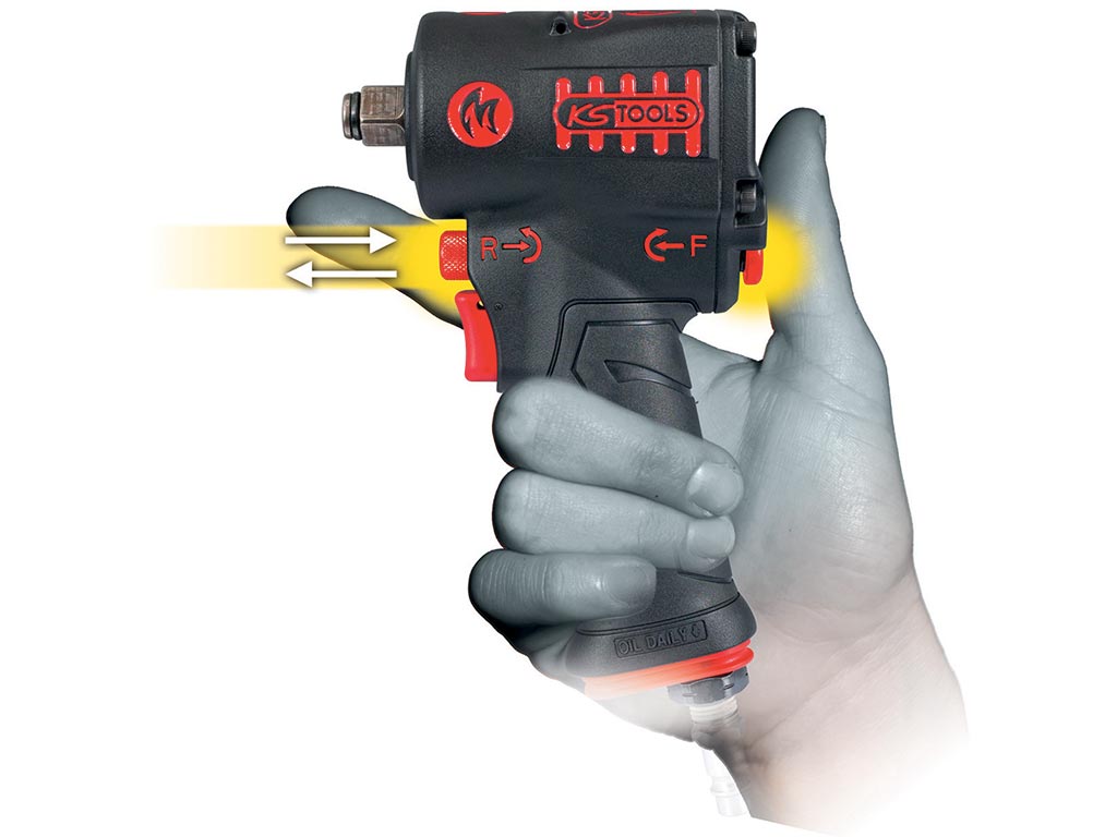 Acteur sur le marché de l’outillage à main depuis 18 ans, KS TOOLS propose une nouvelle clé à chocs pneumatique ultra compacte avec seulement 95 mm de largeur. Avec un poids de 1,3 kg, le modèle MINI MONSTER 515.1270 est 40 % plus léger que le modèle MONSTER 515.1210. La particularité de la clé à chocs pneumatique KS TOOLS est son utilisation à une seule main pour un gain de productivité, l’inverseur de sens se manipule de façon intuitive entre le pouce et l’index. Côté confort, la clé à chocs pneumatique MINI MONSTER dispose d’une poignée ergonomique recouverte d’un grip et d’un système d’accroche pour avoir l’outil toujours à portée de main.