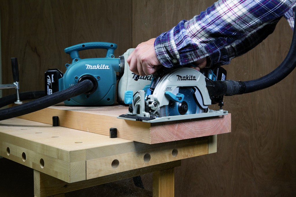 Légère (3,3 kg), la scie circulaire est pourvue d’une base, d’un capot et d’un carter en fonte de magnésium. Conjuguée à sa compacité (L. 350 x l. 170 x h. 238 mm), elle est maniable et se déplace aisément. Elle permet ainsi aux agenceurs, cuisinistes, couvreurs et bricoleurs avertis de travailler confortablement sur les chantiers. Pour garantir la visibilité du trait de coupe durant toute l’opération, un jet d’air souffle la sciure et une lumière LED est intégrée à l’avant de l’appareil. L’utilisateur a la possibilité de monter la machine sur un rail de guidage pour couper avec précision les grandes pièces de bois.
