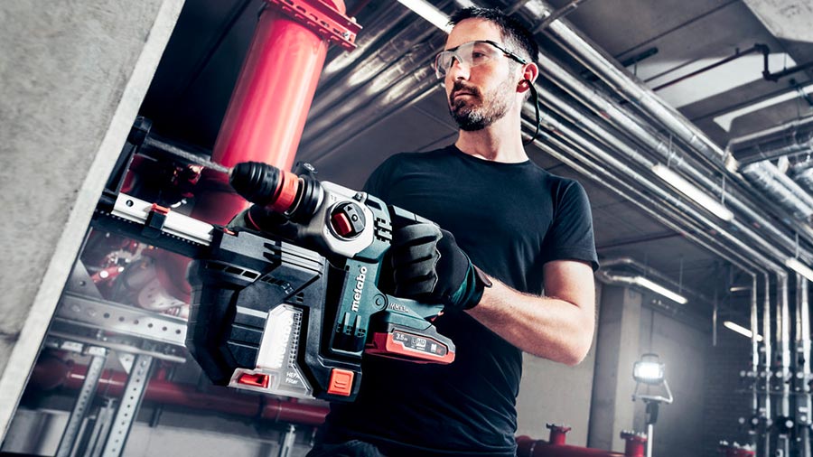 Metabo ne révolutionne pas le marché des marteaux, mais se positionne avec un nouveau modèle équipé d’un extracteur de poussières intégré avec filtre HEPA avec le KHA 18 LTX BL 24 Quick Set ISA.