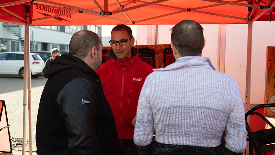 Milwaukee a fait un système de pôle par métier pour mettre en avant les nouveautés Milwaukee en fonction du corps de métier : électricité, plomberie, maçonnerie, charpenterie... Vous apprécierez l'excellent accueil de l'équipe Milwaukee dans la bonne humeur. Les clients présents sont satisfaits avec des retours positifs : ils peuvent tester et obtenir des conseils auprès des experts Milwaukee.