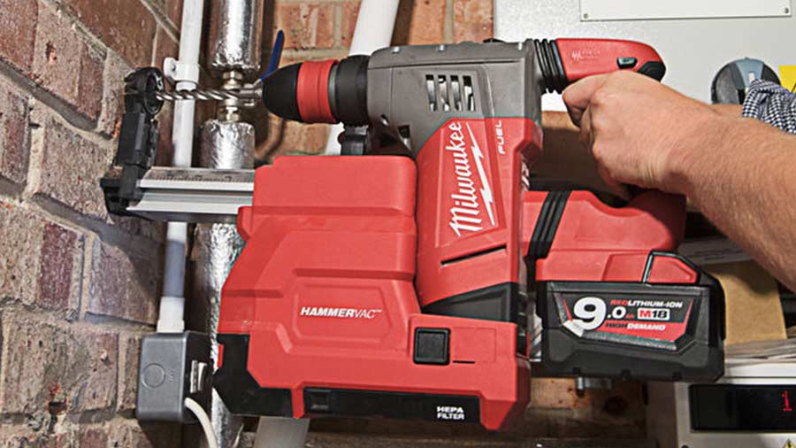 Ces deux modèles intègrent la fonction piquage pour effectuer des burinages correctifs ou des saignées dans le béton. Pour travailler sans poussières, l’utilisateur pourra adapter l’aspirateur de poussières M18-28 CPDEX-0, il est compatible avec le perforateur M18 CHPX. À noter qu’il existe un kit complet M18 CHPXDE-502C (perforateur + aspirateur) livré en mallette de transport. Ces deux machines sont complémentaires pour les travaux de transpercement et d’encastrement d’appareillage électrique dans le béton.