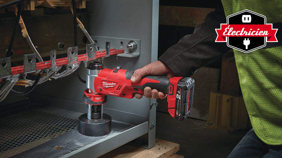 Milwaukee propose dans la gamme M18 Force logique des outils spécifiques comme le coupe câble hydraulique Milwaukee M18 HCC-201C qui permet de découper sans effort les câbles en aluminium et cuivre jusqu’au 35 mm. Pour gagner en productivité lors des transpercements de coffret métalliques, la marque propose l’emporte-pièce hydraulique Force Logic M18 HKP-201C Milwaukee. Cette nouvelle solution est capable de découper rapidement une tôle de 3 mm en acier jusqu’au 100 mm sans bavures.