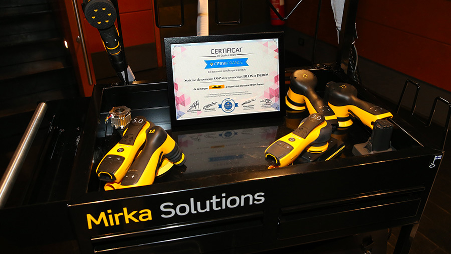 Révolutionnaire, le concept OSP Mirka a séduit un millier de carrosseries depuis son lancement. Face au succès de son système, Mirka a souhaité faire labelliser ce dernier, afin de mettre en avant sa gamme de ponceuses électriques et de soutenir le développement du concept OSP, en s’appuyant sur la caution technique d’un acteur majeur dans le milieu de la réparation automobile. C’est donc naturellement que Mirka s’est tournée vers Cesvi France pour faire labelliser son système OSP. En effet, Cesvi France propose depuis 2017 une labellisation pour les produits et équipements à haute technicité pour la réparation automobile.