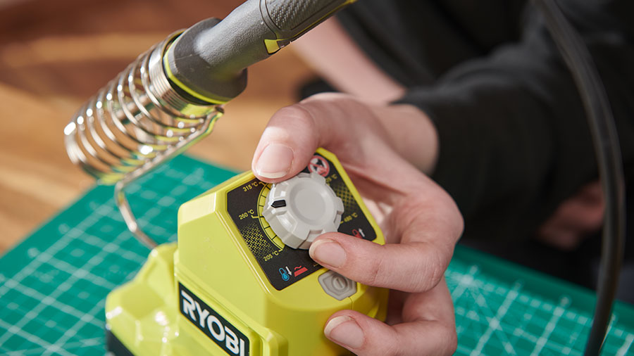 Simple d’utilisation, la base du Ryobi RSI18 comporte un bouton marche/arrêt et un bouton de réglage de la température pour un fonctionnement intuitif à la portée de tous. Un voyant lumineux clignotant indique les périodes de chauffage et de refroidissement. Cela permet à l’utilisateur de savoir en un coup d’œil quand le fer à souder est prêt à l'emploi et quand il est sûr de le toucher, pour une utilisation plus sûre et plus pratique. Sa poignée ergonomique en forme de stylo offre une prise en main ferme et agréable pour un confort optimal et un contrôle précis.