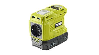 Le Ryobi RYSP21ABI150B est équipé d’un transformateur qui délivre 150 W en continu et 225 W en crête. Cela signifie qu’il peut alimenter tous les appareils électriques filaires et/ou à batterie pendant les vacances, les loisirs en plein air, les travaux de bricolage et de jardinage, les passe-temps... Ce transformateur dispose d’un port électrique AC pour les appareils filaires tels que télévisions, radios, outils filaires.... Il dispose également de 2 ports USB-A (2,4 A - 5 V) et d’un port USB-C (3 A - 5 V) pour les appareils sans fil alimentés par batterie tels que les smartphones, les tablettes, les lampes, les outils sans fil... Il est doté d’un chargeur de batterie permettant de recharger toutes les batteries Ryobi 18 V One+ (câble inclus).