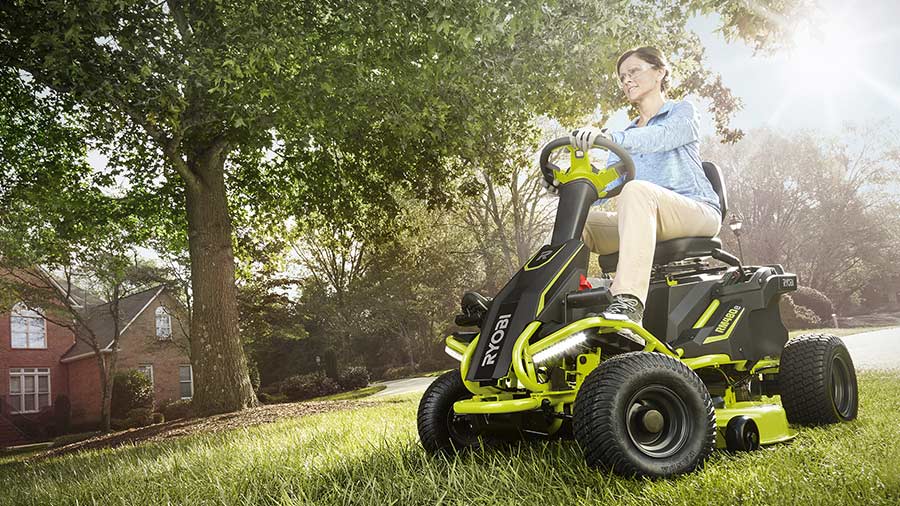 RYOBI lance le Rider RM480E, une tondeuse autoportée sur batterie 48V 100 Ah qui offre 2 heures d’autonomie. Équipée de 3 moteurs sans charbons Brushless, elle assure une puissance, des performances et une efficacité comparables à un Rider thermique ; les vibrations, le bruit et les émissions polluantes en moins !