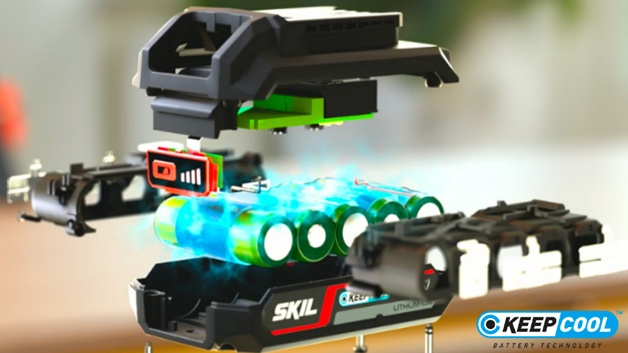 Technologie KEEP COOL : temps de travail rallongé de 25 %, par rapport à une batterie standard (exemple pour une batterie 20V Max. de 2,0 Ah sans KEEP COOL) et durée de vie 2 fois plus longue.
