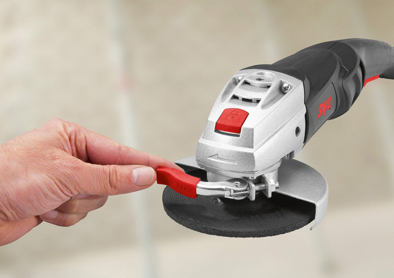 Attentif aux besoins de ses utilisateurs, Skil a développé une meuleuse d’angle légère (seulement 2 kg), compacte et au design ergonomique pour une excellente maniabilité. Facile à manipuler, la poignée latérale peut se régler facilement dans trois positions différentes selon le travail en cours. L’interrupteur marche / arrêt est, lui suffisamment grand pour être accessible à tout moment. Pratique, cette machine est dotée d’un cordon de 3 mètres pour une liberté de mouvement optimale. Innovant, Skil a mis en place un système exclusif pour un changement rapide d’accessoire « l’auto clic ». Le principe est simple : il suffit de bloquer l’arbre en appuyant sur le bouton de blocage et de changer l’accessoire à l’aide de la clé fournie. De plus, pour un travail en toute sécurité, ce dispositif permet la fixation ultrarapide du carter de protection dans toute position de travail.