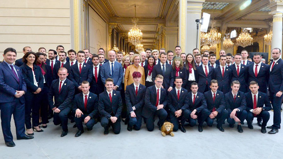 La délégation WorldSkills France et l’Équipe de France des Métiers 2019, qui concourront lors de la WorldSkills Competition Kazan 2019 en août prochain, ont été reçus par le Président de la République, M. Emmanuel Macron, au Palais de l’Élysée, mardi dernier, le 7 mai.