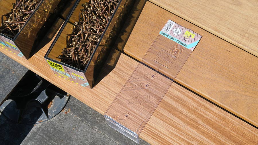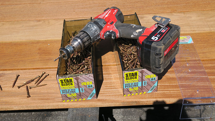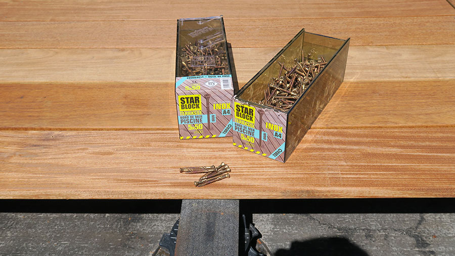 Et enfin, il faut calculer le nombre de vis nécessaire en partant sur la base d’un perçage tous les 40 cm et d’une largeur de lame de 120 mm, ce qui donne 1 m² pour 40 vis. L’utilisateur doit donc choisir une boite de 200 vis pour 5 m², 500 vis pour 12,5 m² et 1000 vis pour 25 m².