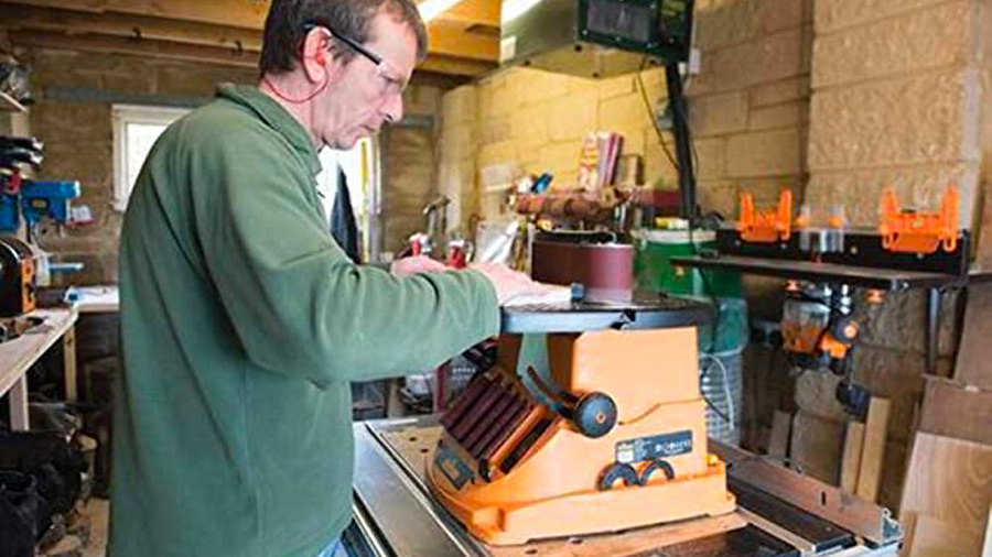 Avec une puissance de 450 W, cette machine permet d’enlever efficacement une grande quantité de matière en début de travaux, idéale pour décaper du parquet, préparer un meuble ou une porte afin de les repeindre… Elle dispose d’un grand plateau en fonte d’aluminium de 430 x 410 mm avec section avant inclinable de 0 à 45 ° promettant une parfaite planéité, une précision maximale et une grande robustesse, même sur les pièces les plus complexes. Elle est parfaite pour poncer les contours, arcs, courbes et autres formes irrégulières.