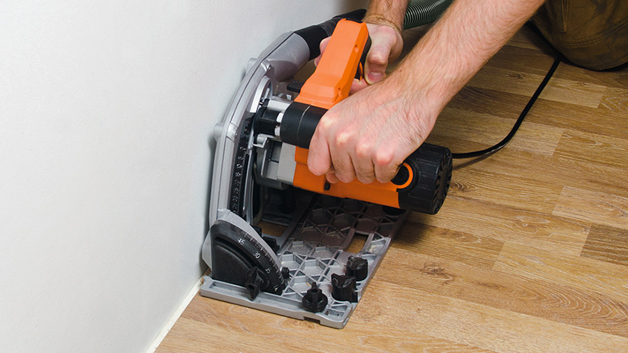Ne pesant que 5,7 kg, la scie plongeante TTS185KIT reste relativement légère et ainsi facile à manœuvrer dans le bois, même au plus près des murs (15 mm).