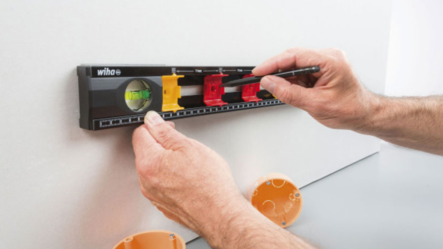 Le niveau à bulles pour électricien 246 Wiha facilite les tâches de mesures grâce à son boîtier continu de 400 mm de longueur qui permet à l’utilisateur de tracer des lignes continues. Il présente des marquages de distance variables pour jusqu’à 4 boîtes d’encastrement, ce qui constitue un atout indéniable lors des travaux d’installation électrique. Il permet de gagner un temps précieux pour la mesure et le marquage horizontal et vertical des écartements des boîtes d’encastrement.