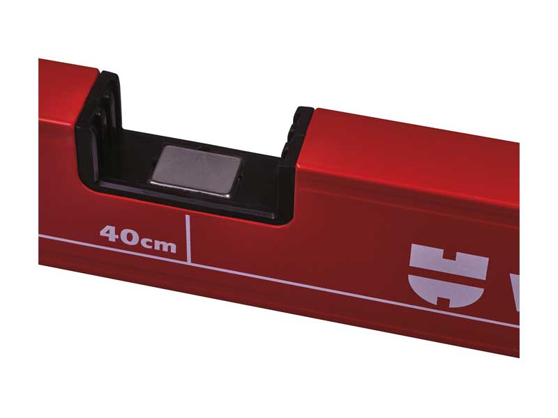 En aluminium, ce niveau rectangulaire de 90 cm doté d'encoches aimantées et de repères à 40 et 60 cm permet le traçage et l'alignement en toute simplicité des montants de plaque de plâtre. Très puissants, les aimants sur les encoches permettent au niveau de s'insérer et de se maintenir facilement sur les montants.