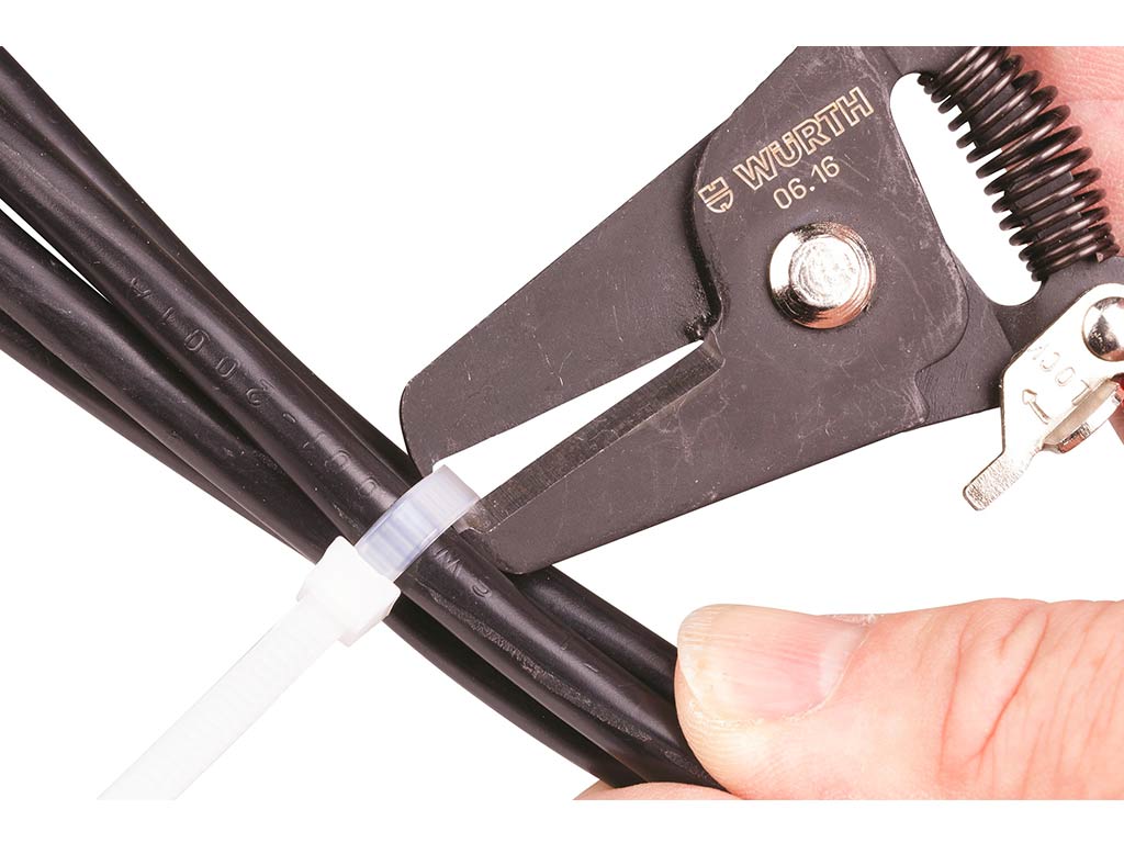 Würth France lance sur le marché une pince coupe collier innovante. La forme spécifique des becs de la pince permet de couper les colliers plastiques et nylons sans endommager les câbles, là où un ciseau ou un cutter pourrait involontairement le faire.