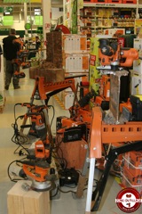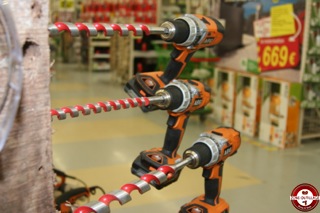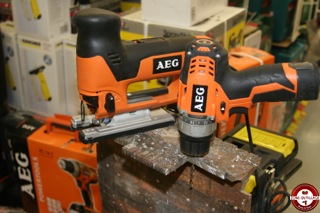 C’est une occasion pour nous de faire connaissance avec un commercial de la marque, nous nous dirigeons vers le rayon outillage électroportatif que nous connaissons bien. Au centre de celui-ci, un show-room AEG avec les derniers produits de la marque sont joliment présentés. Une grande quantité d’outils de la gamme sont exposés pour les consommateurs, par exemple, la scie sabre BUS 18 LI, la perceuse-visseuse BSB 18C LI ou encore le marteau perforateur BBH18.