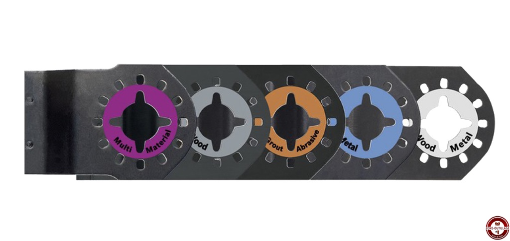 Le porte-outil est pourvu d’un nouveau code de couleur par application. Il facilite ainsi le choix de l’accessoire en fonction du matériau à traiter. Il se décline en 5 catégories :