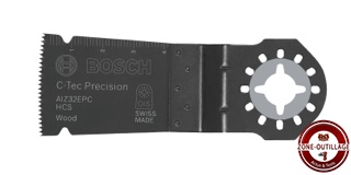 La lame plongeante C-Tec Precision Bosch est en bimétal et en acier à haute teneur en carbone. Elle dispose de la technologie Bosch innovante avec bord de coupe arrondi (convexe) qui permet d’entamer la coupe par oscillation avec plus de fluidité et plus proprement. Combiné à un porte-outil renforcé avec des fentes anti-vibrations, pour une meilleure maîtrise, et un corps de lame aminci, pour réduire les risques de blocage lors de coupes plongeantes profondes, cette lame assure des coupes précises, nettes et sans à-coups même dans le bois, le bois dur et le bois clouté. Enfin, un moyeu déporté permet d’effectuer des découpes à ras du matériau.