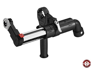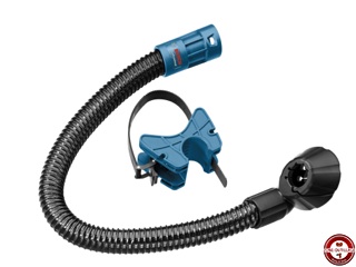 Le dispositif d’aspiration de poussière GDE 16 Cyl Professional Bosch est conçu pour les perceuses à percussion Bosch. Il couvre les diamètres de perçage de 4 à 16 mm et convient aussi pour les scies-trépans et couronnes-trépans jusqu’à 82 mm de diamètre. L’abréviation « Cyl » fait référence au porte-outil cylindrique des outils destinés aux forets à queue cylindrique classiques, d’ailleurs également appelés « Cyl » dans la gamme Bosch. Le dispositif d’aspiration robuste avec poignée supplémentaire et guide télescopique en aluminium peut être adapté aux différentes longueurs de forets au moyen de leviers de serrage rapide. La profondeur de perçage maximale par étape de travail est de 120 mm. La profondeur de perçage souhaitée se règle facilement au moyen de la butée de profondeur intégrée. Le caoutchouc spécial placé au point d’application du dispositif d’aspiration ne laisse pas de marques sur les surfaces fragiles. Le dispositif d’aspiration peut être raccordé à tous les aspirateurs usuels. Le raccord pour aspirateur est orientable, ce qui permet de travailler sans être gêné par le tuyau flexible. Par ailleurs, le point de raccordement du tuyau et donc le centre de gravité du dispositif se situe près du corps de l’utilisateur, pour un travail plus précis et sans fatigue. Le confort et la précision sont également garantis par le faible poids du dispositif (seulement 500 g).