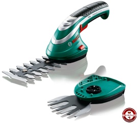 La nouvelle génération de cisailles Isio Bosch permet la coupe de l’herbe et la taille des arbustes en toute simplicité. Un nouveau système « multi-clic » équipe désormais toutes les cisailles Isio, permettant de passer rapidement de la lame taille-herbe à la lame sculpte-haies. Il suffit en effet d’appuyer simultanément sur les deux boutons rouges situés de part et d’autre de l'outil pour libérer le bloc lame/fixation. Flexible, ce système permet de changer d’accessoire en un clic : taille-herbes, sculpte-haies ou pulvérisateur.